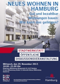 Auf der Stadtwerkstatt am 27. November werden beispielhafte Projekte und Methoden aus anderen Städten vorgestellt. Im Anschluss wollen wir mit Vertreterinnen und Vertretern aus Planung, Politik und Wohnungswirtschaft - und vor allem mit Ihnen - über die Möglichkeiten und Bedingungen für kostengünstiges Bauen in Hamburg sprechen.